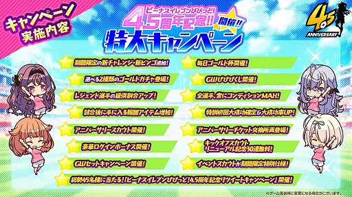ビーナスイレブンびびっど 4 5周年記念特大キャンペーンが開催